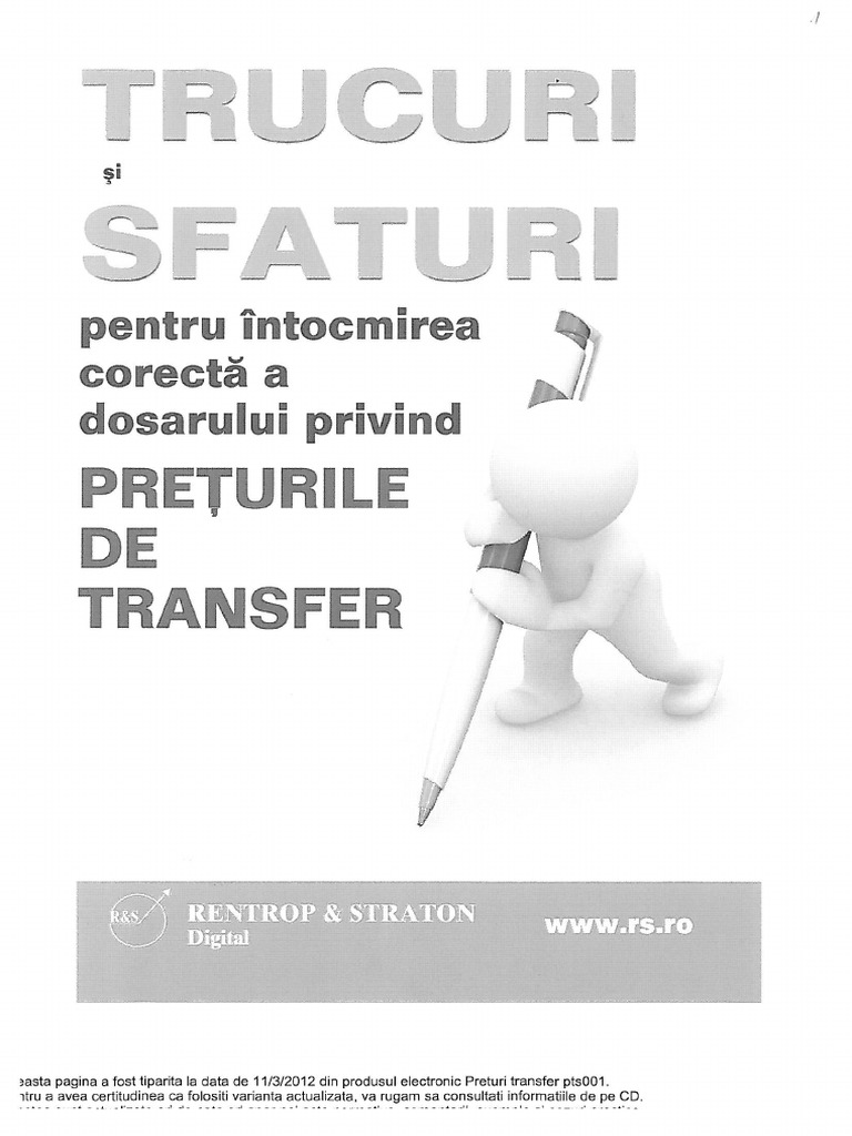 81 likes · 1 talking about this. Companiile multinationale au inceput sa se confrunte din ce in ce mai des cu controale din partea autoritatilor fiscale din romania, controale ce vizeaza modalitatea. 222 din 8 februarie 2008 impune contribuabililor care desfasoara tranzactii cu persoane afiliate sa intocmeasca dosarul preturilor de transfer (art.